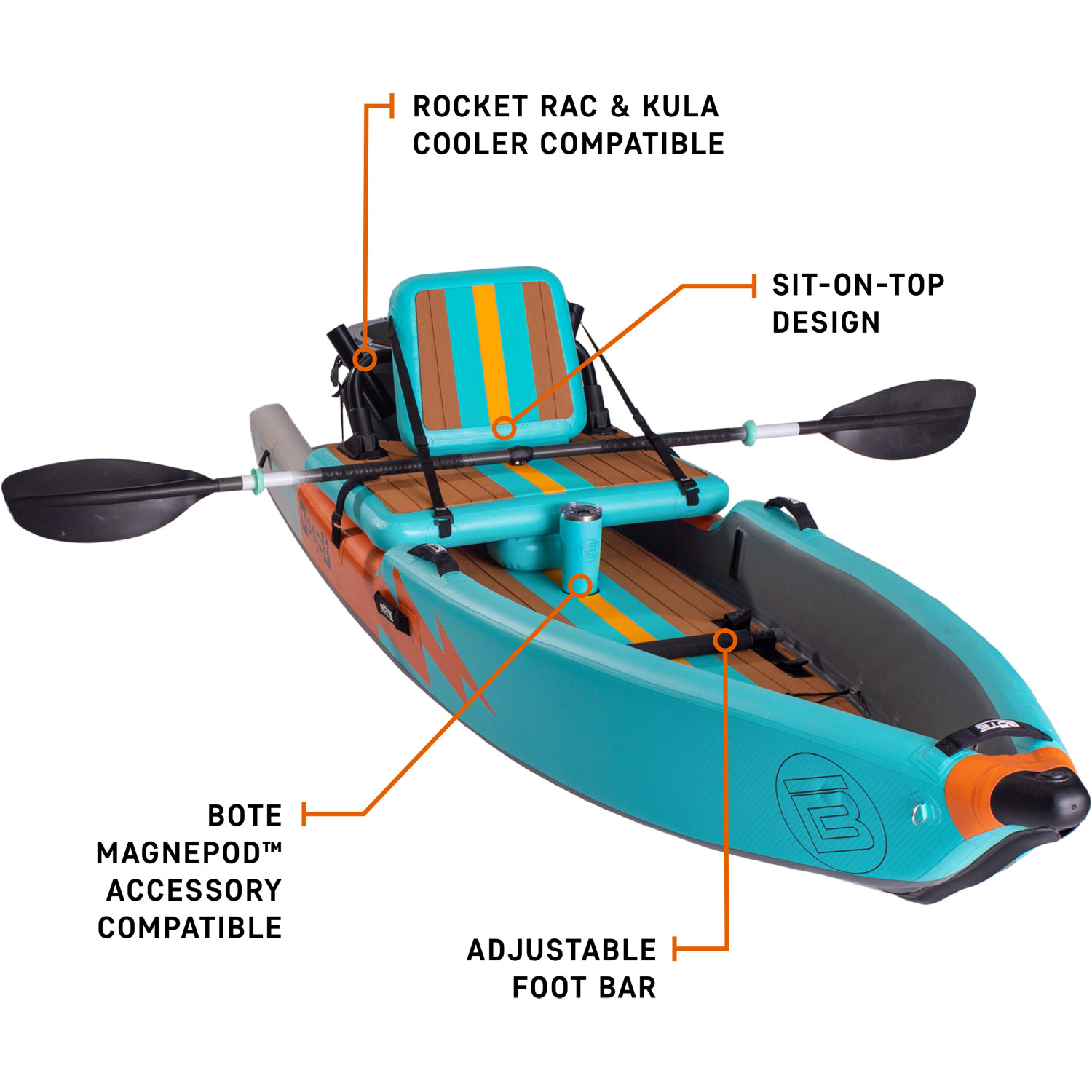 EIN KAJAK & EIN SUP: Das DEUS Aero kann in Sekundenschnelle vom Sit-on-Top-Kajak zum SUP umgebaut werden. Entfernen Sie einfach die obere Kammer und es wird zu einem super stabilen Stand Up Paddle Board.