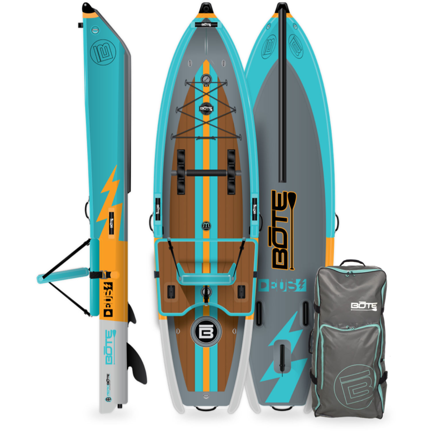 Das einzigartige aufblasbare Freizeitkajak BOTE DEUS [day-us] Aero 11′ Classic Cypress betritt die Kajakkategorie ohne Rivalen. Dieses vielseitige Freizeitkajak, das branchenführendes Design und Technik nutzt, ist mit der aufblasbaren AeroBOTE-Technologie von BOTE konstruiert und verwandelt sich in wenigen Minuten von einer Reisetasche in ein 11-Fuß-Sit-on-Top-Kajak. Entfernen Sie die obere Kammer und es wird in Sekundenschnelle zu einem super stabilen Stand Up Paddle Board. Die PVC-Konstruktion in Militärqualität macht den DEUS unglaublich leicht und super einfach zu lagern und zu transportieren.