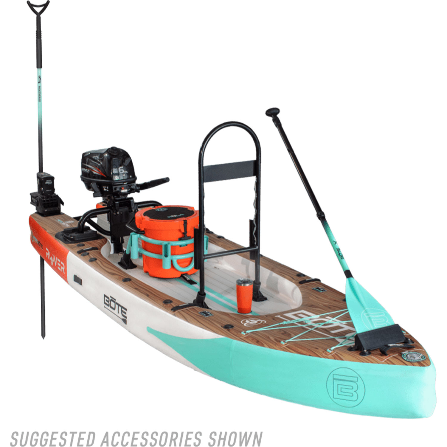 Der Rover Aero kann mit einem Außenbordmotor ausgestattet werden, sodass Sie viel weiter als mit einem herkömmlichen Paddelbrett fahren können und dann, wenn Sie dort ankommen, immer noch die Möglichkeit haben, heimlich hineinzupaddeln.