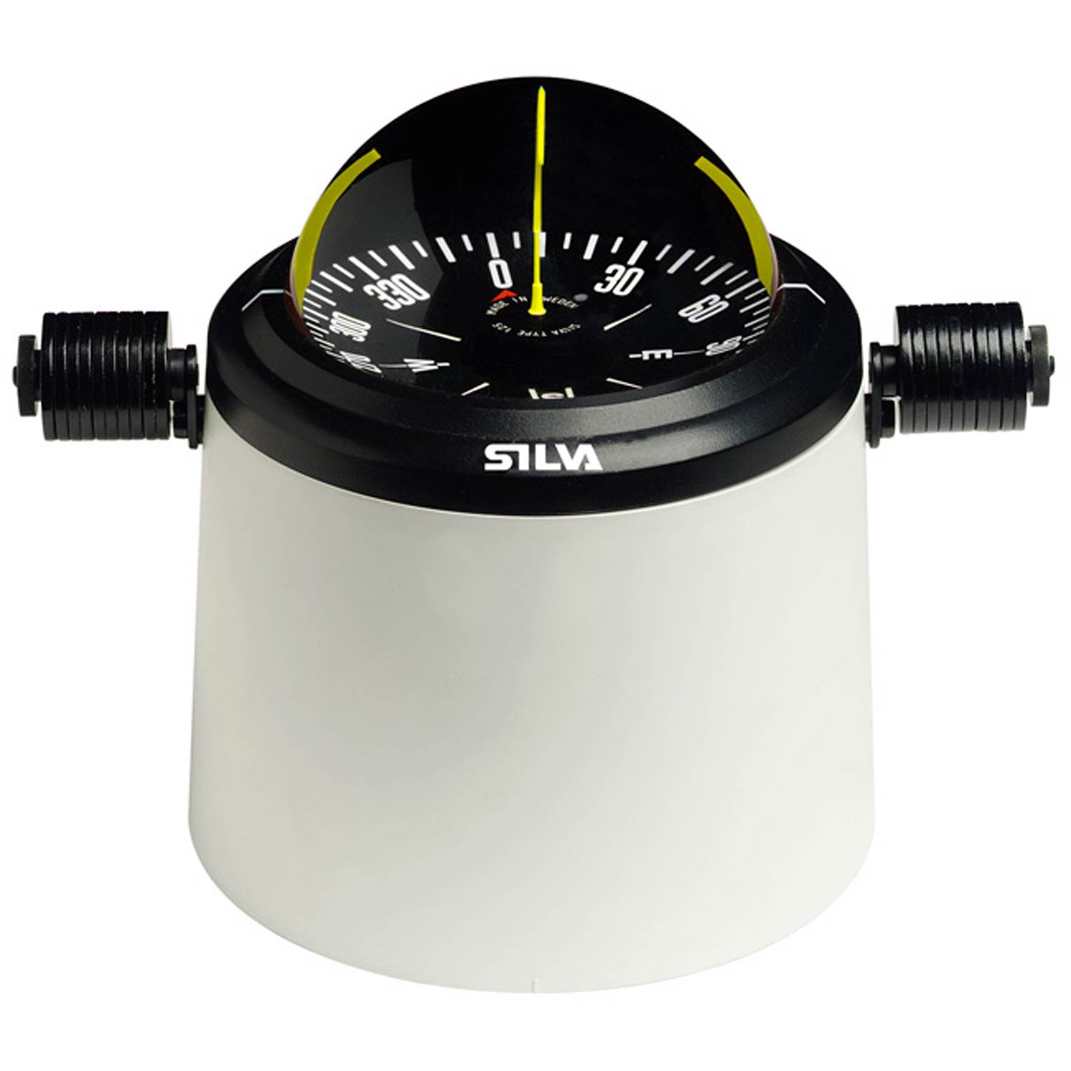 An extended centre needle eliminates parallax errors and the gimballed yellow lubber lines stay vertical even when in rough seas. Compensation is standard. It is also possible to add a heeling compensator.