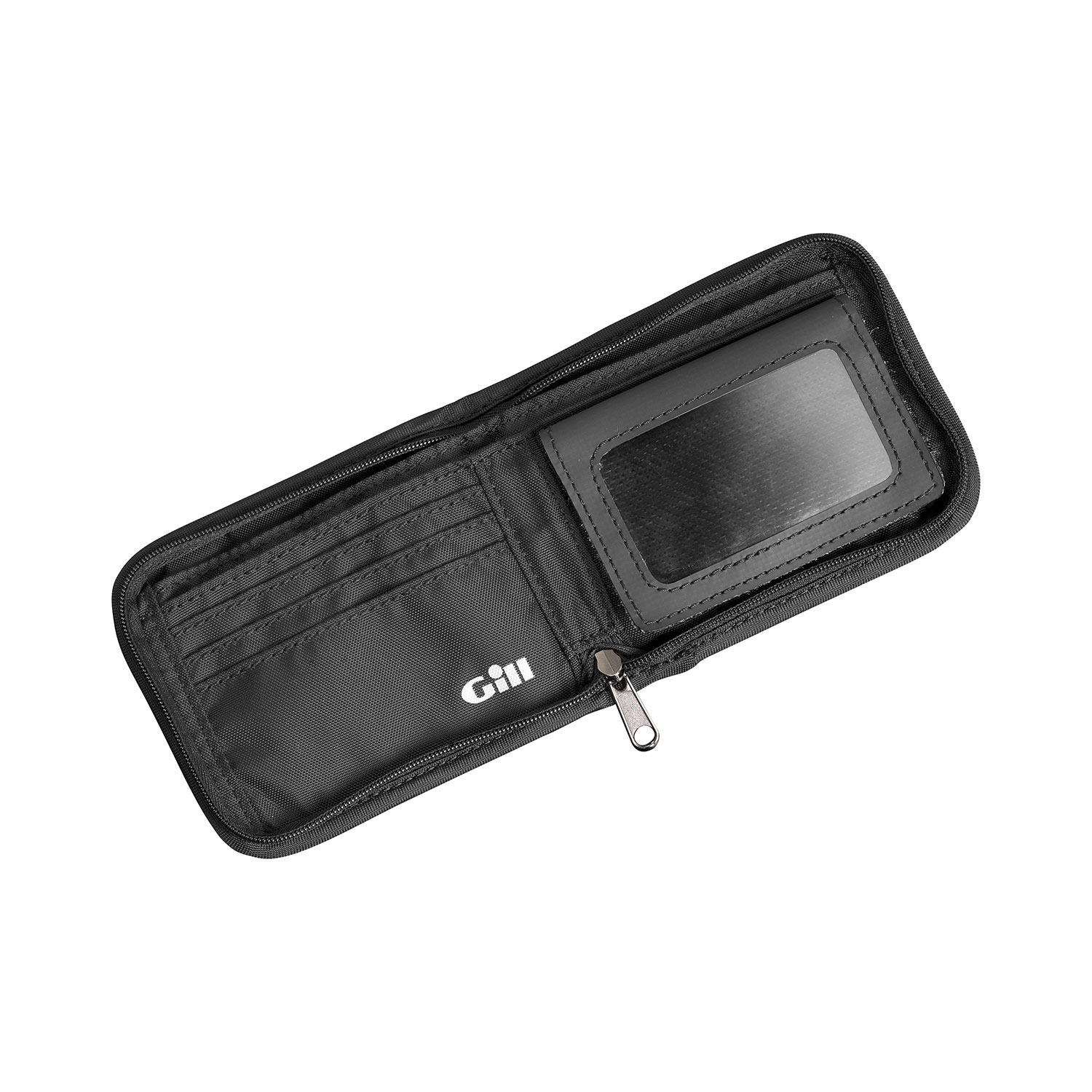 A secure zippered wallet with plenty of space for cards and currency.