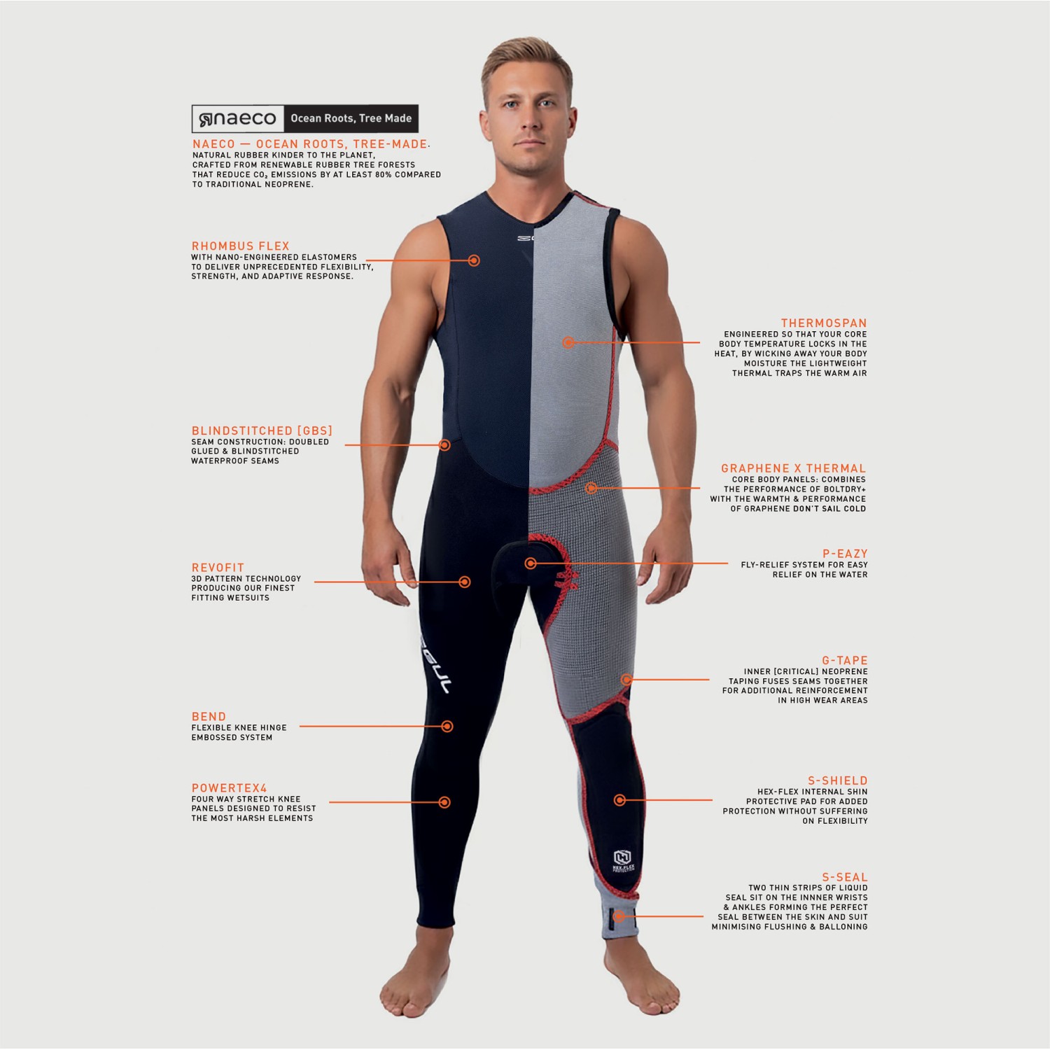 - Thermospan Thermal Lining – Retains heat for cold-water comfort.