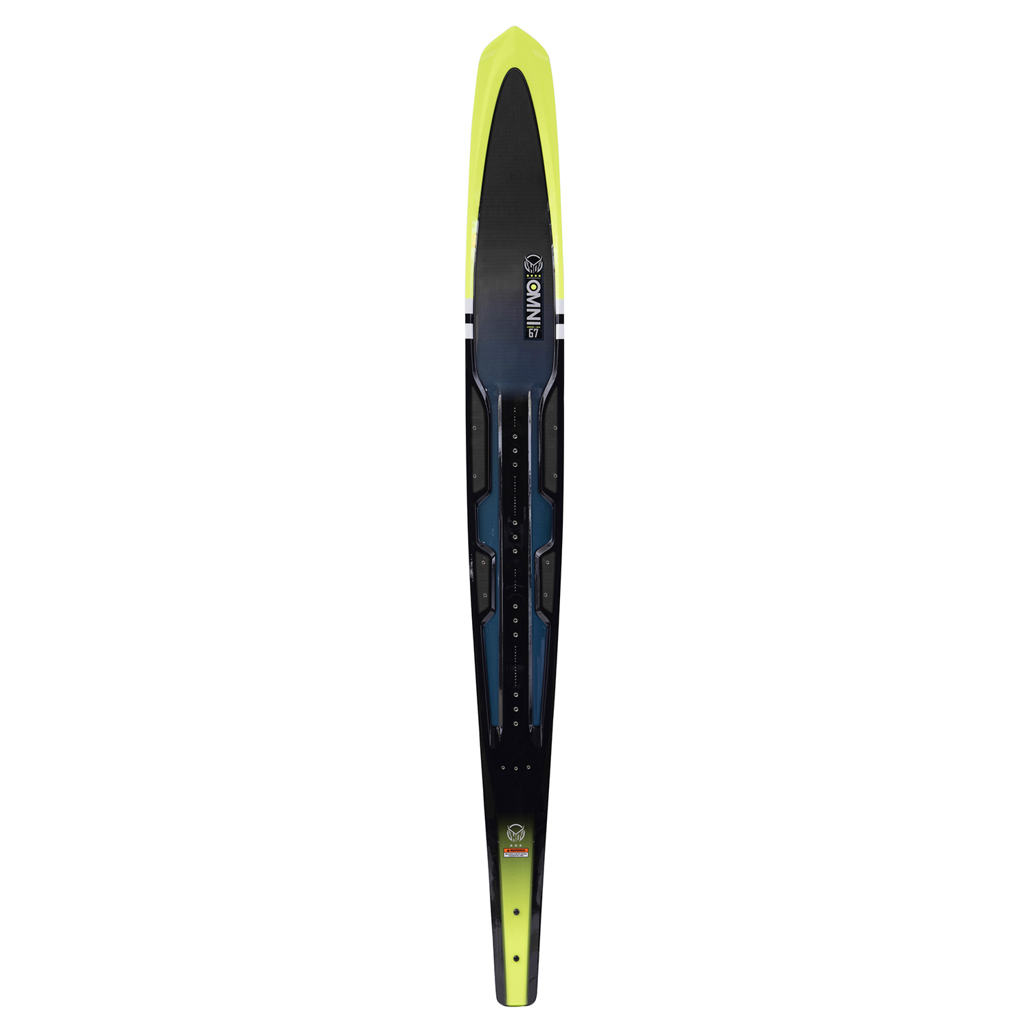 A resounding improvement on crossover skis, the OMNI is optimized for the skier who needs one ski to do everything. Developed for high versatility, the OMNI marries high performance skiing with the efficiency essential for open water skiing. The Omni's Flex-Frame provides increased torsional flex for the maneuverable feel of a traditional ski with the added speed & stability of a wideride ski. This allows the ski to twist creating tighter turns while added width provides the stable platform skiers need. The Omni was designed with a Hybrid Waist Width, halfway between those typically found in traditional skis and those in wideride skis. This provides for smooth instinctive turns at a wide range of speeds. Clean Edge Technology reduces drag 50% by allowing water to release cleanly off the bottom of the ski. This differs from conventional edges where water wraps around the bevel, up the sidewall and releases off the upper edge creating suction.