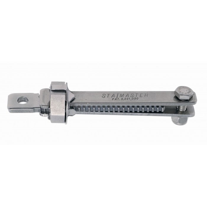 The Sta-Master allows you to easily repeat exact tension settings for your sailing situation with its unique readable measurements time after time. The Sta-Master's finely calibrated center traveler quickly locks for exact repeatable settings for each wind and water condition. Precision crafted from top quality stainless steel for long, trouble-free life.