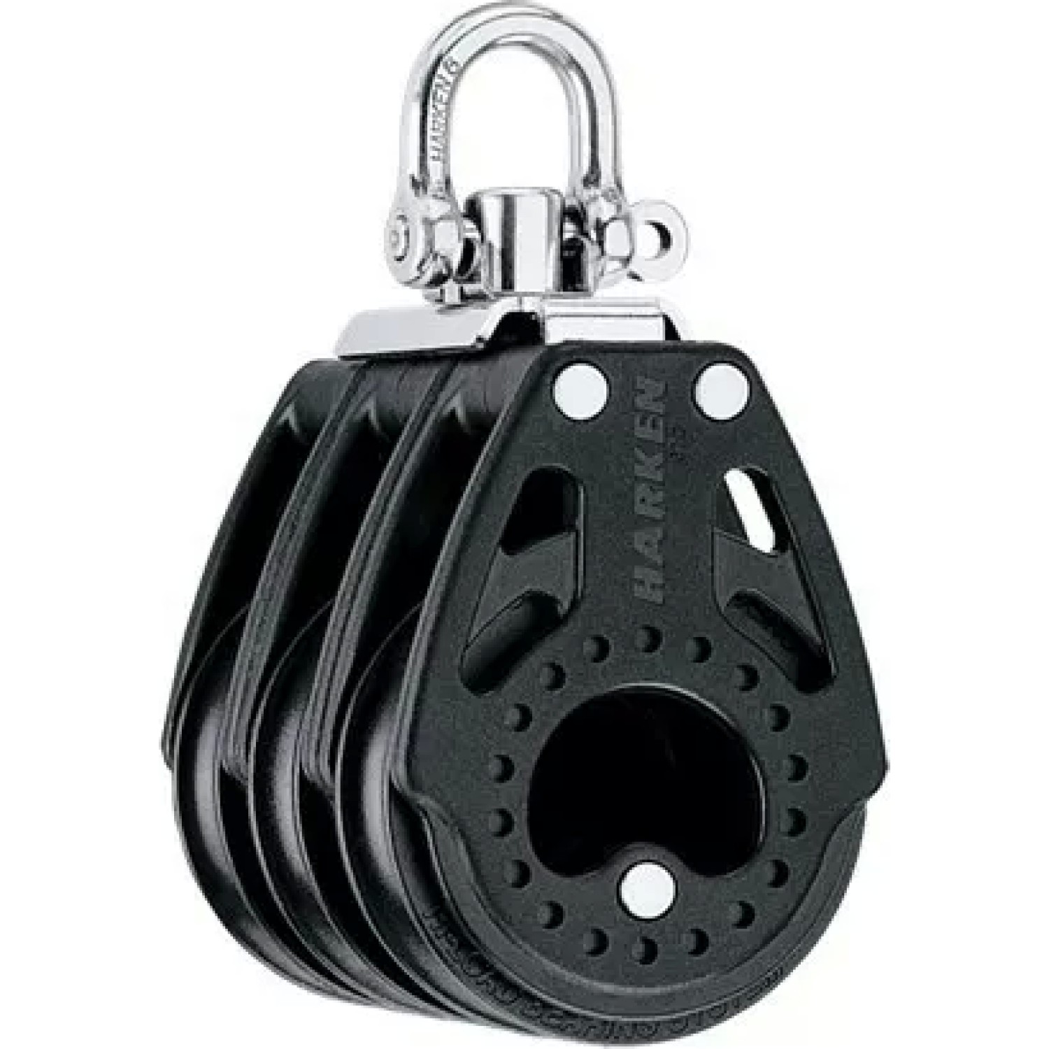 Der Harken 57-mm-Dreifachblock mit Wirbel ist eine hochbelastbare und hocheffiziente Lösung für leistungsstarke Hebelsysteme im anspruchsvollen Segelsport. Als Teil der bewährten Carbo Air-Serie bietet dieser Dreifachblock außergewöhnliche Festigkeit, Laufruhe und Zuverlässigkeit in einer kompakten und leichten Bauweise.