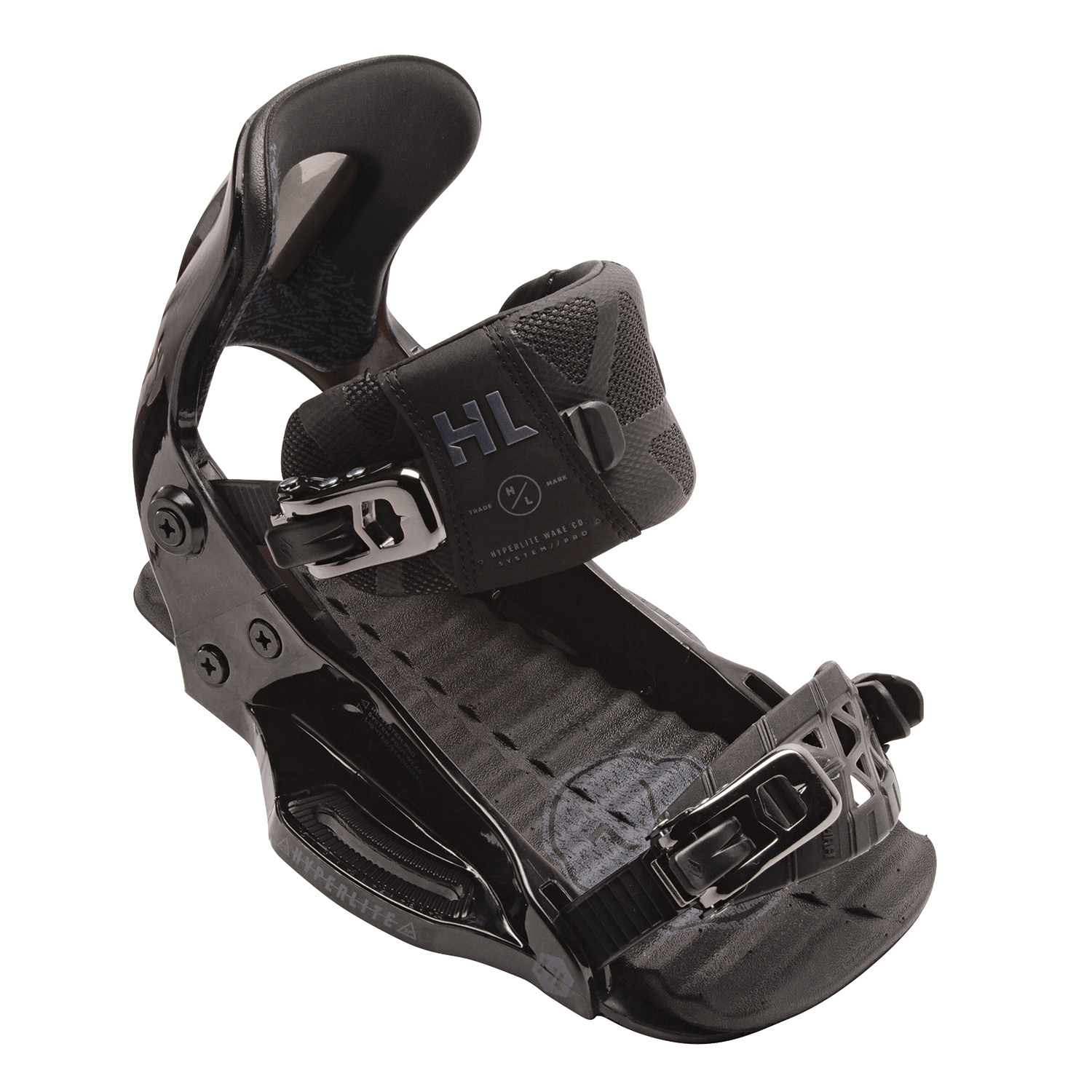 The System Pro has been perfected over the past 6 seasons, taking an already revolutionary product and making it even better. This updated binding design centers around three new features. Beginning with our exclusive G6 Polycarbonate chassis that is lighter than previous generations, while still providing superior board control and support. The improved chassis interfaces with our exclusive Urethane Highback for maximum mobility and response. New Auto Centering Stability Plates allow a rider to set their bindings up for the correct size boots in minutes. The plates are removable and can be replaced, ensuring a solid connection even after seasons of wear and tear. Exclusive to the System Pro Binding is a removable EVA Footpad that provides additional impact protection and a mellower feel under foot. This new System is the ultimate in high performance wake footwear for boat and cable riders alike.