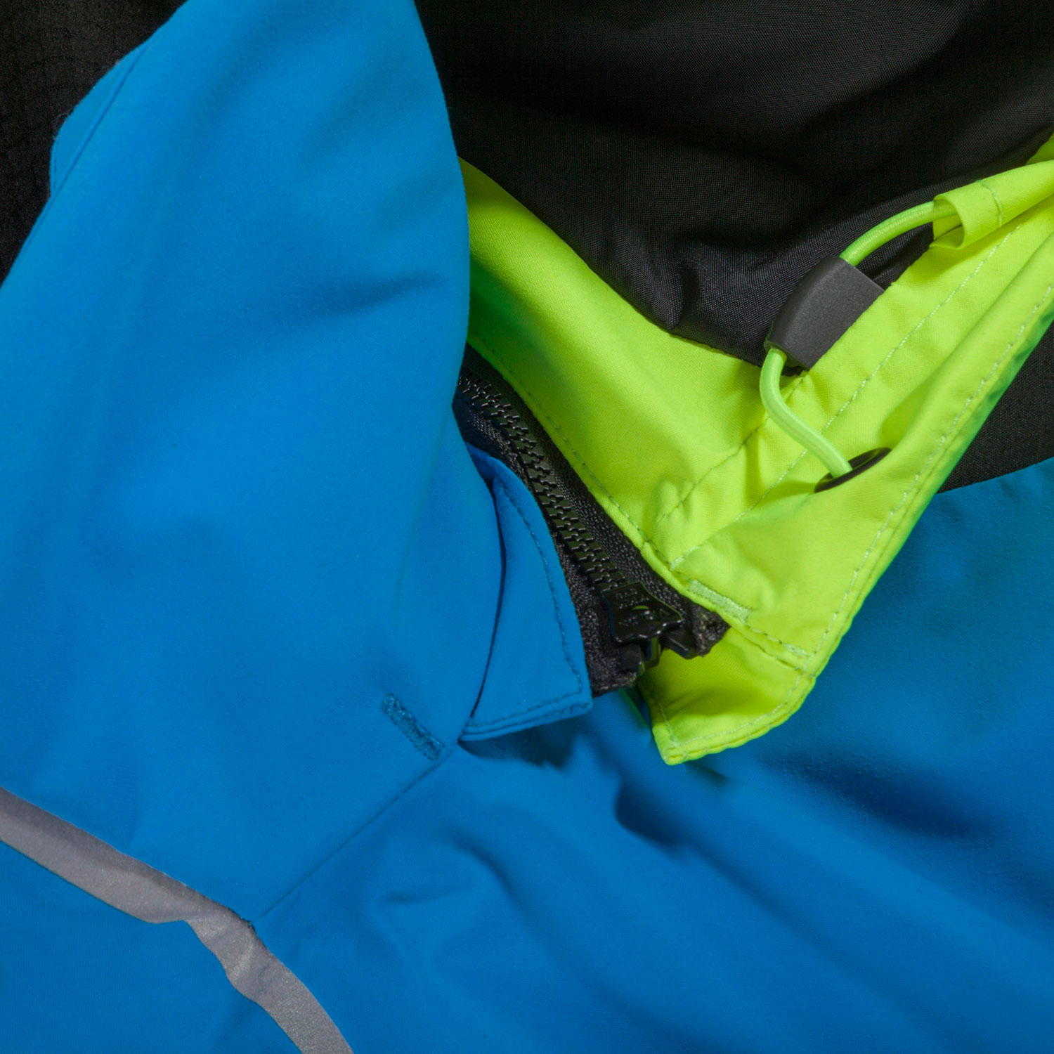 • Kapuze mit versteiften Spitzen- und Entwässerungsrinnen, um das Abfließen von Wasser zu fördern