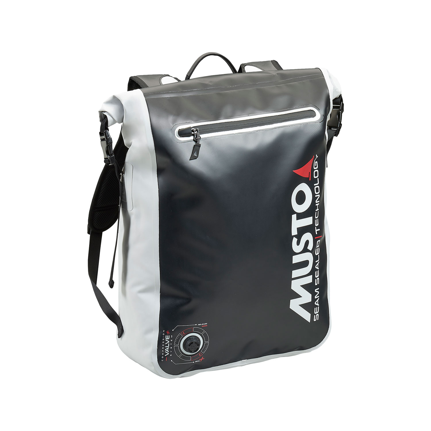 Inhalt seines 40L-Hauptfachs gegen Wasserschäden. Ein strapazierfähiges Ventil löst den Druck, während eine Perforation an der nicht wasserdichten Fronttasche der Tasche dazu beiträgt, das Wasser abzulassen, was die Trocknungszeiten verkürzt. Ein PVC-Fenster hilft Ihnen, Ihre Gegenstände leichter zu finden.