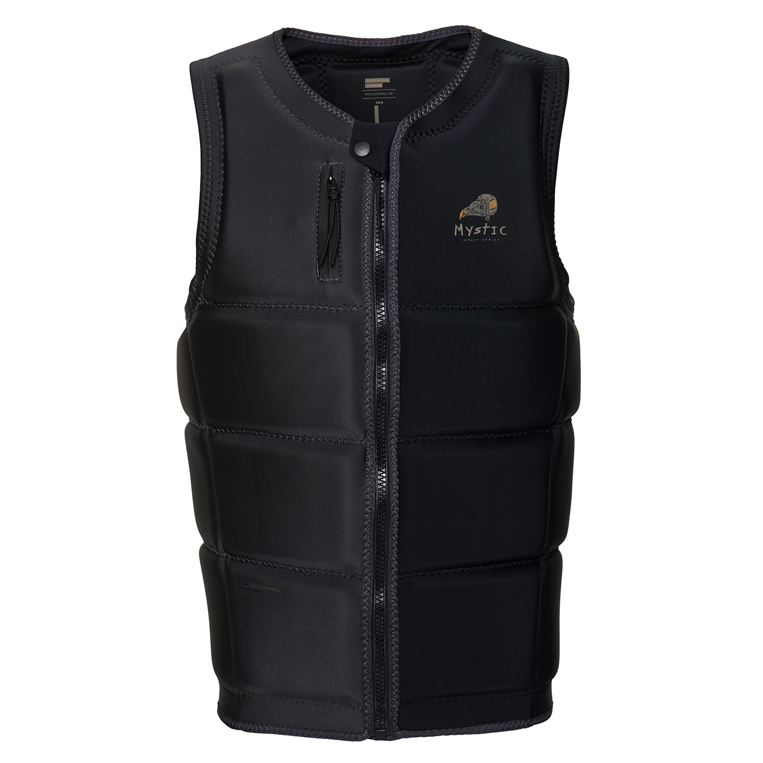 I talentuosi fratelli Peacock si sono procurati due giubbotti quest'anno, in bianco e nero. Forse ora è più facile tenere separati quei ragazzi. Il gilet è marchiato con il logo bolt mystic sul retro e può essere facilmente abbinato ad una muta o ad una maglia quickdry