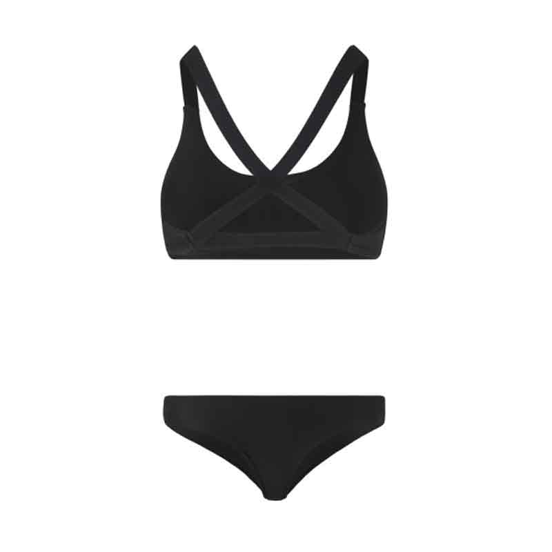 Ein stylischer schwarzer Bikini sollte auf Reisen immer dabei sein. Sie können nichts falsch machen, auch leicht mit anderen Stilen zu kombinieren. Das Top ist mit den gekreuzten Trägern am Rücken angenehm zu tragen. Top Fit: Mit abnehmbaren Polstern und elastischen Trägern beschnitten. Bottom Fit: Tanga Fit. Das Model ist 175 cm groß und trägt Größe 36.
