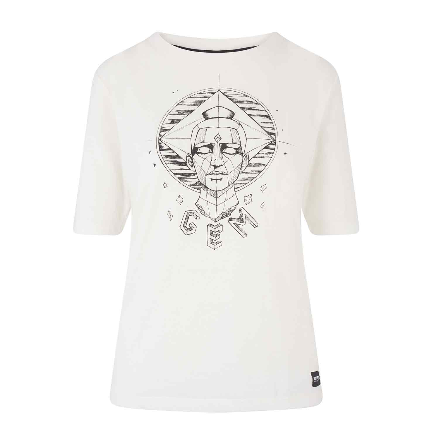 Einzigartiges T-Shirt mit individuellem Gem-Motiv auf der Vorderseite, das von einem Illustrator speziell für Mystic entworfen wurde. Passform: Regular Fit, verlängerte Ärmel / Das Model ist 175 cm groß und trägt Größe S.