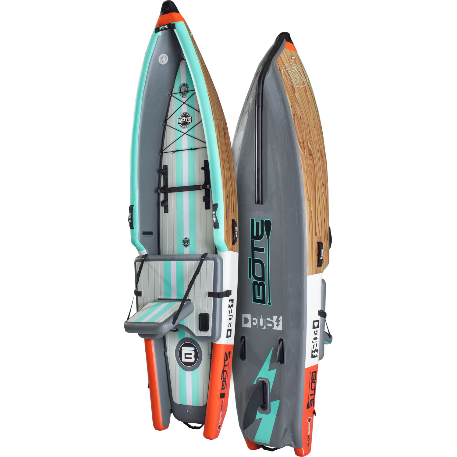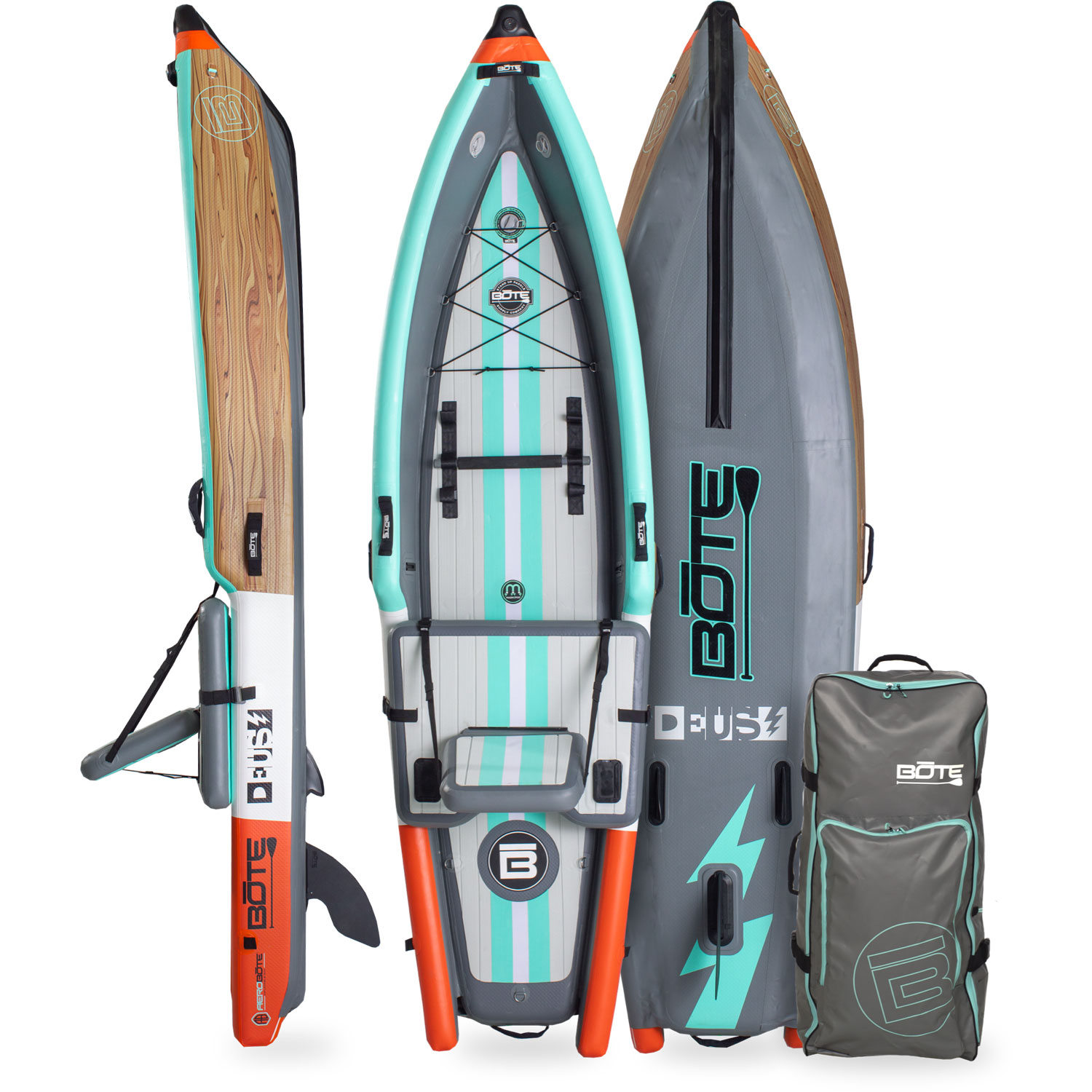 Единственный в своем роде надувной каяк для отдыха BOTE DEUS [day-us] Aero 11′ Classic Cypress входит в категорию каяков, не имеющих себе равных. Этот универсальный прогулочный каяк, созданный с использованием надувной технологии AeroBOTE компании BOTE, создан с использованием инновационного дизайна и инженерных разработок, и за считанные минуты превращается из дорожной сумки в 11-футовый каяк с сидячим верхом. Снимите верхнюю камеру, и она за считанные секунды станет сверхустойчивой доской для серфинга. Конструкция из ПВХ военного класса делает DEUS невероятно легким, а также очень удобным для хранения и транспортировки.