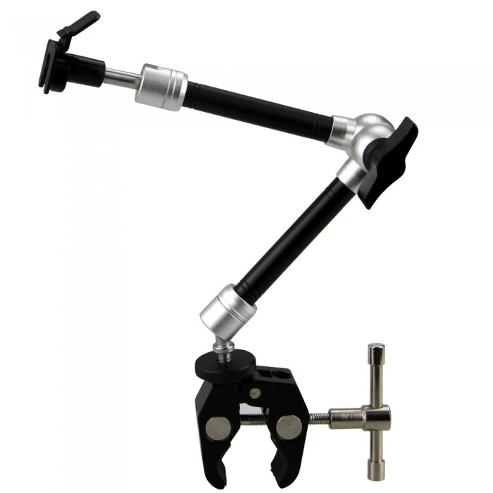 ONE-LOCK Montierung ist eine voll bewegliche Arm mit 90 ° schwenkbar und um 360 ° drehbar Enden, und einem Winkelstück, das um 360 ° dreht. Der Hebel strafft und Schlösser für präzise Positionierung.