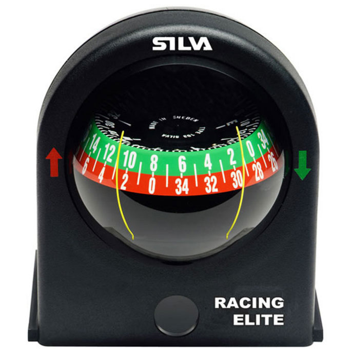 Developed by the worlds top racers and olympic sailors. the double scale divided in a green starboard and red port scale allows you to read the actual course on port and starboard tack from your normal sailing position. For horizontal mounting as used on the Laser.
