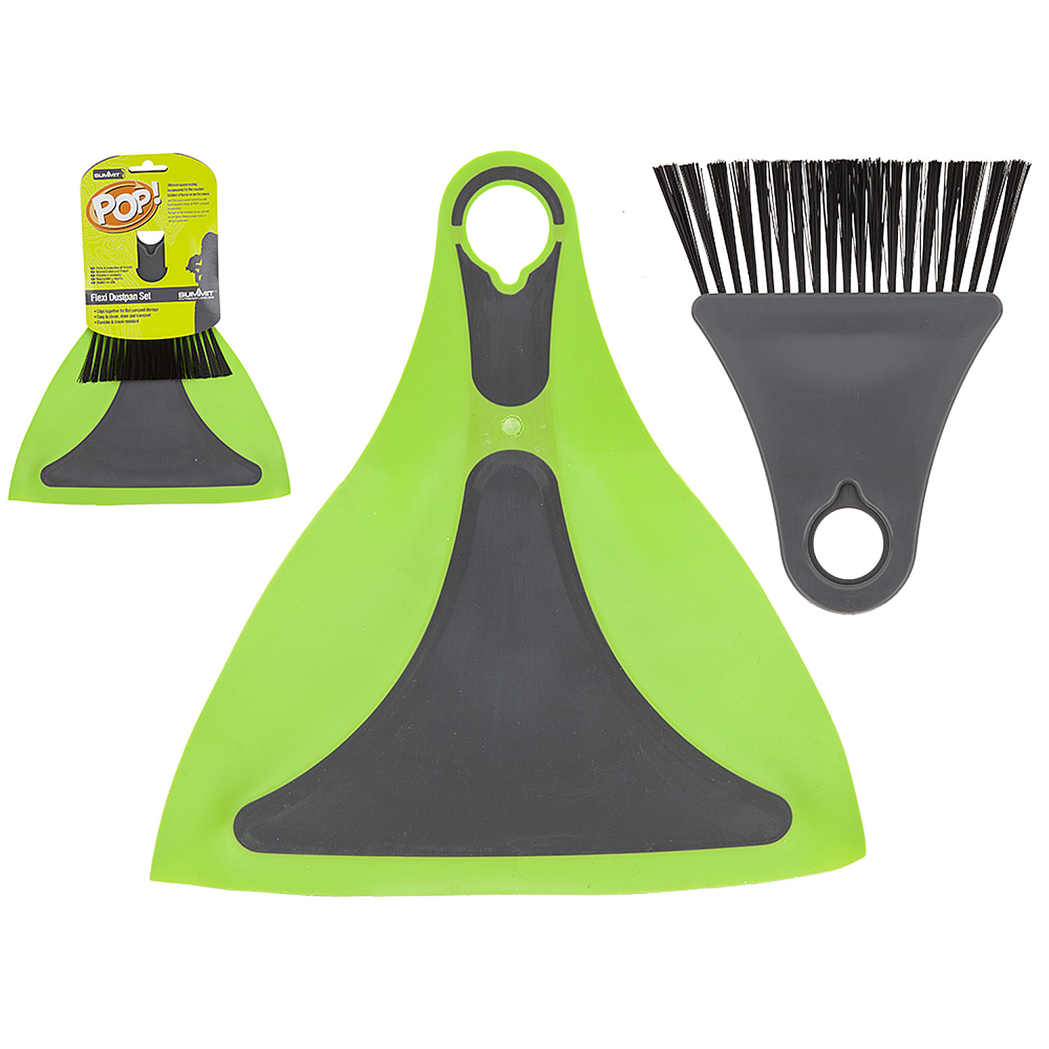 Questo prodotto innovativo ha una spazzola con setole di nylon e una paletta con pannelli laterali flessibili. Il materiale flessibile della paletta consente di essere piegata in modo piatto per lo stoccaggio e il trasporto. Basta afferrare la maniglia per creare la forma tradizionale della paletta. Colore: Lime