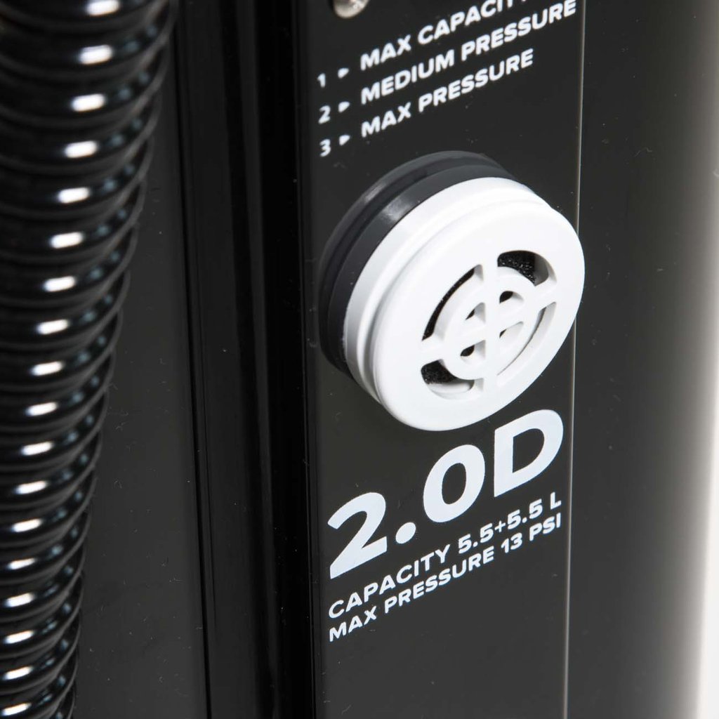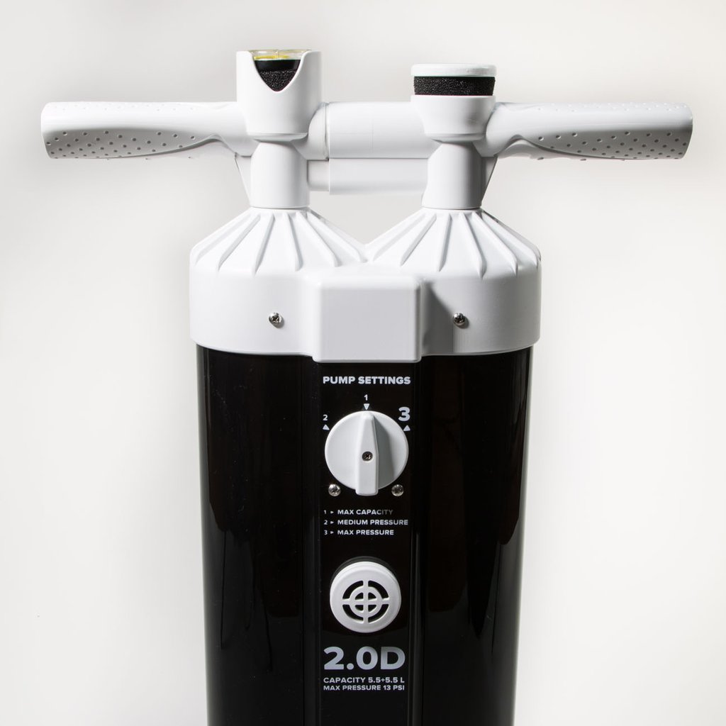 La nuova 2.0D è la più grande pompa da kiteboard mai realizzata. La nuova pompa mostro a doppia camera spinge letteralmente il doppio dell'aria della pompa 2.0T. Disponibile in quantità limitate e in Nord America solo la 2.0D è dotata di tutte le funzionalità di qualità delle pompe WMFG 2.0T e 1.0R +.