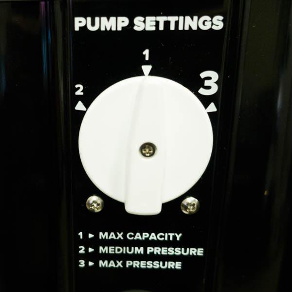 INTERRUTTORE DI INFLAZIONE A 3 VIE: La chiave per la pompa 2.0D è la possibilità di passare tra MAX PORTATA / MEDIA PRESSIONE / MASSIMA PRESSIONE.